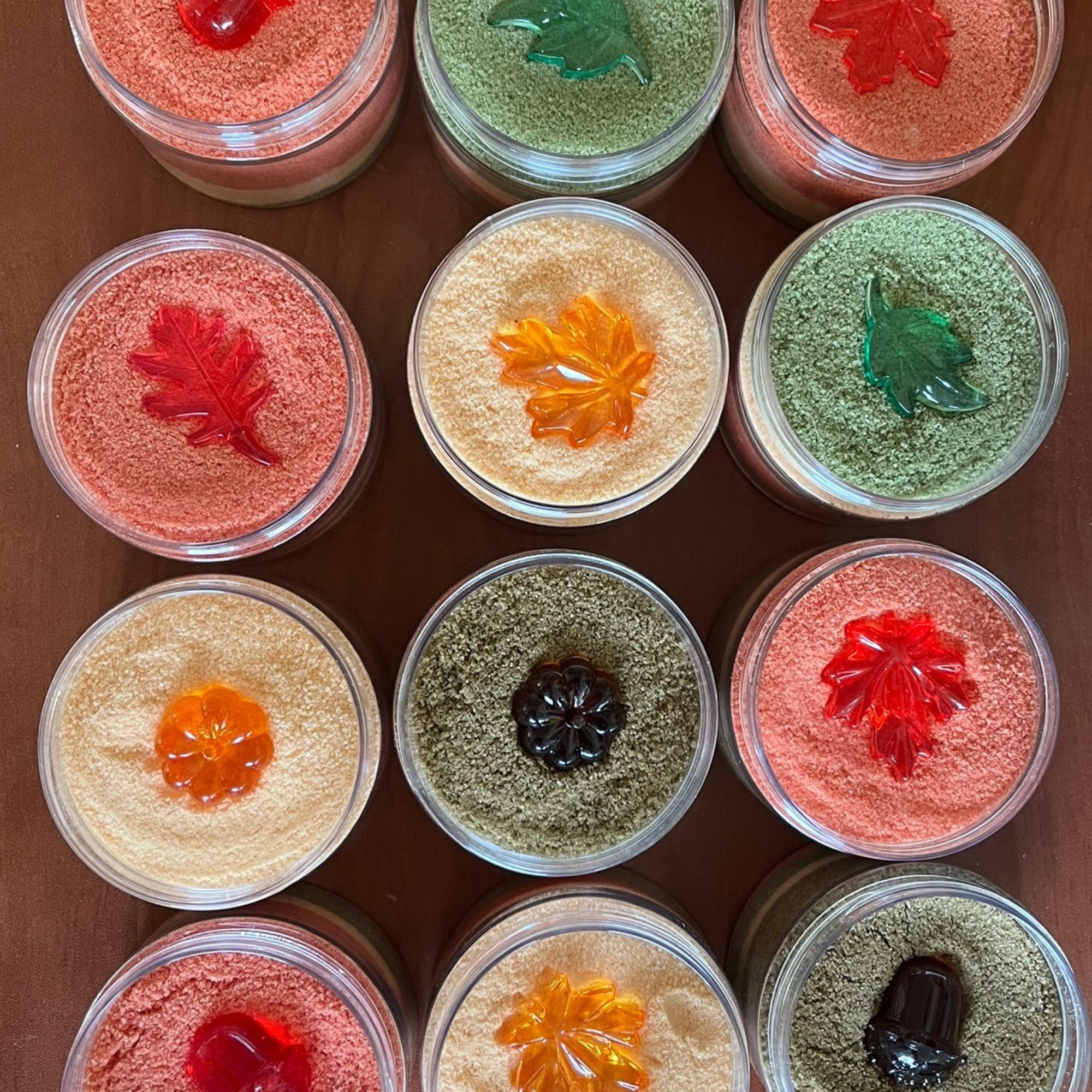 Κάθε σετ περιλαμβάνει έναν δοσομετρητή και ένα όμορφο φθινοπωρινό ακρυλικό στοιχείο, για να εμπλουτίσει την αισθητηριακή εμπειρία και τη φαντασία.
