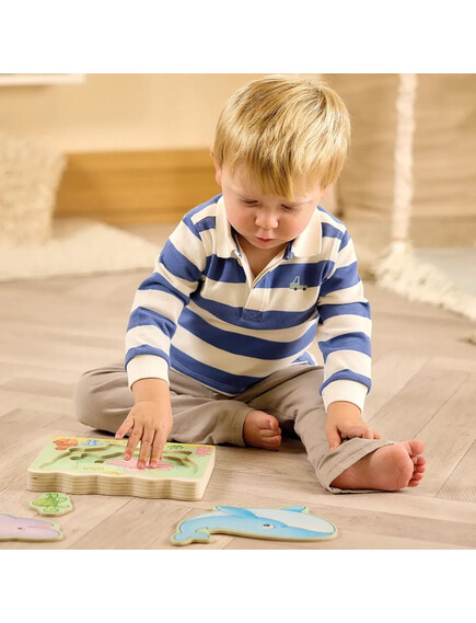 Ανακαλύψτε τον υποβρύχιο κόσμο με το “Πάζλ Θαλάσσια Ζώα”, ένα εκπαιδευτικό παιχνίδι που θα ενθουσιάσει τα μικρά παιδιά από 1 έτους και άνω!