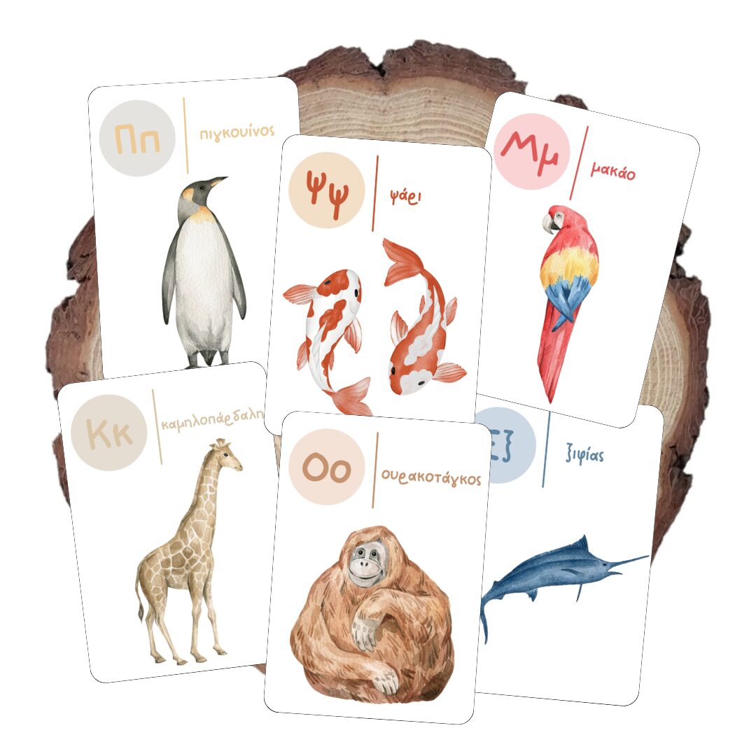 Κάρτες Αλφαβήτας & Αριθμών με Ζώα (Τυπωμένες)