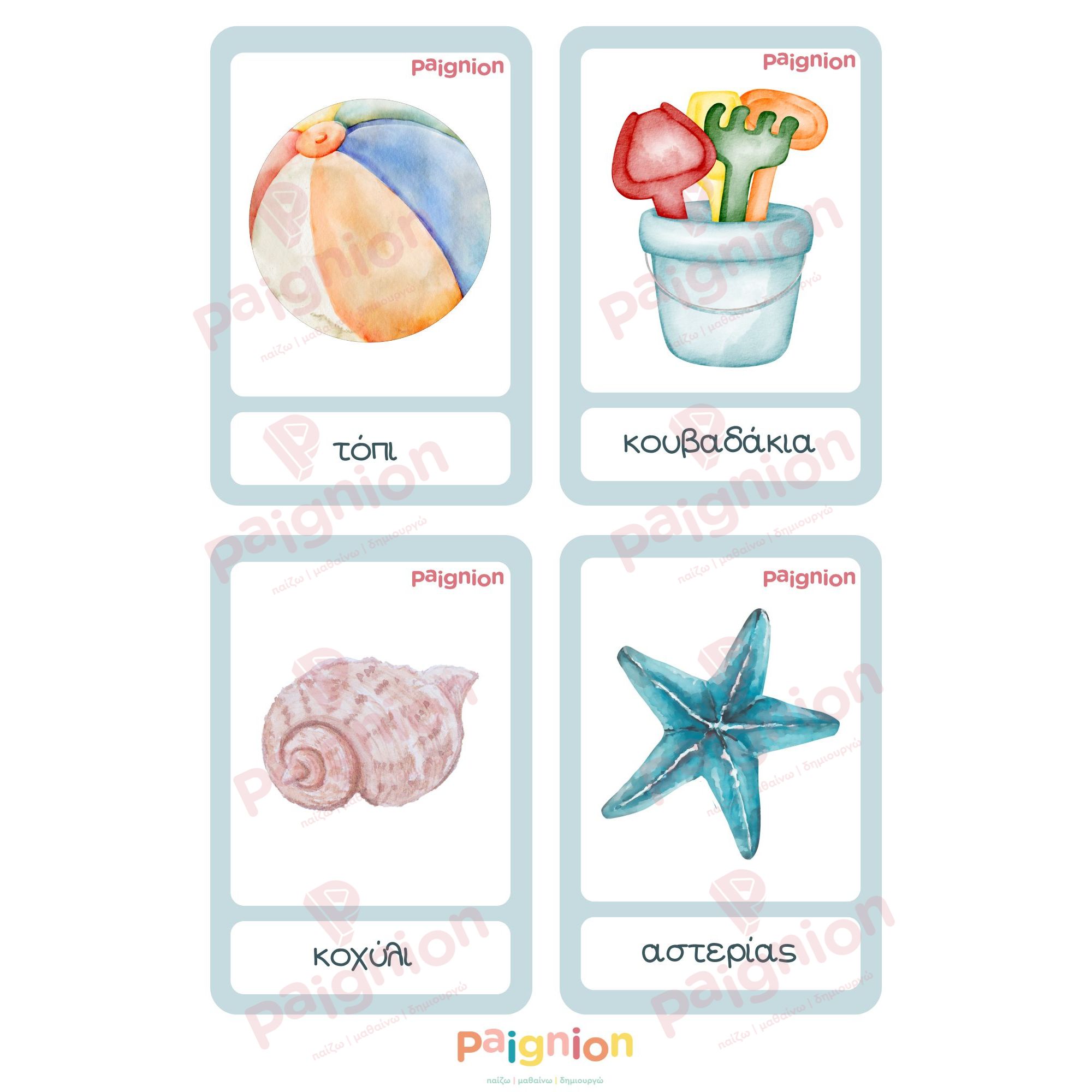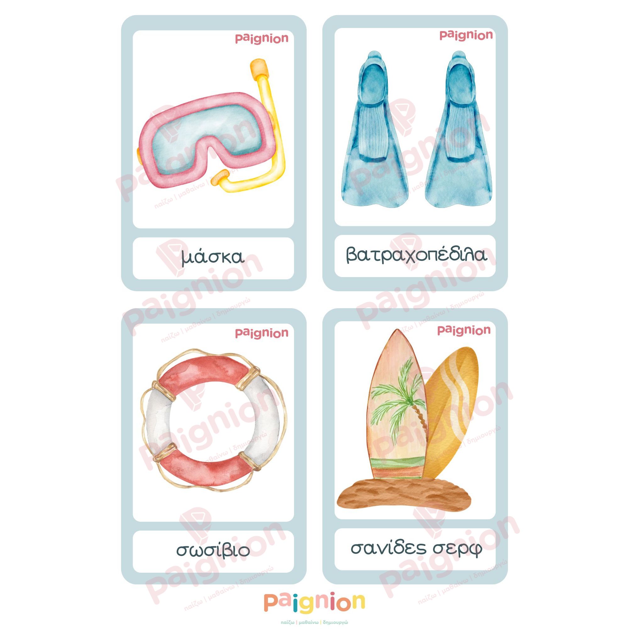 24 κάρτες ανάπτυξης λόγου με εικόνες σχετικές με το καλοκαίρι
