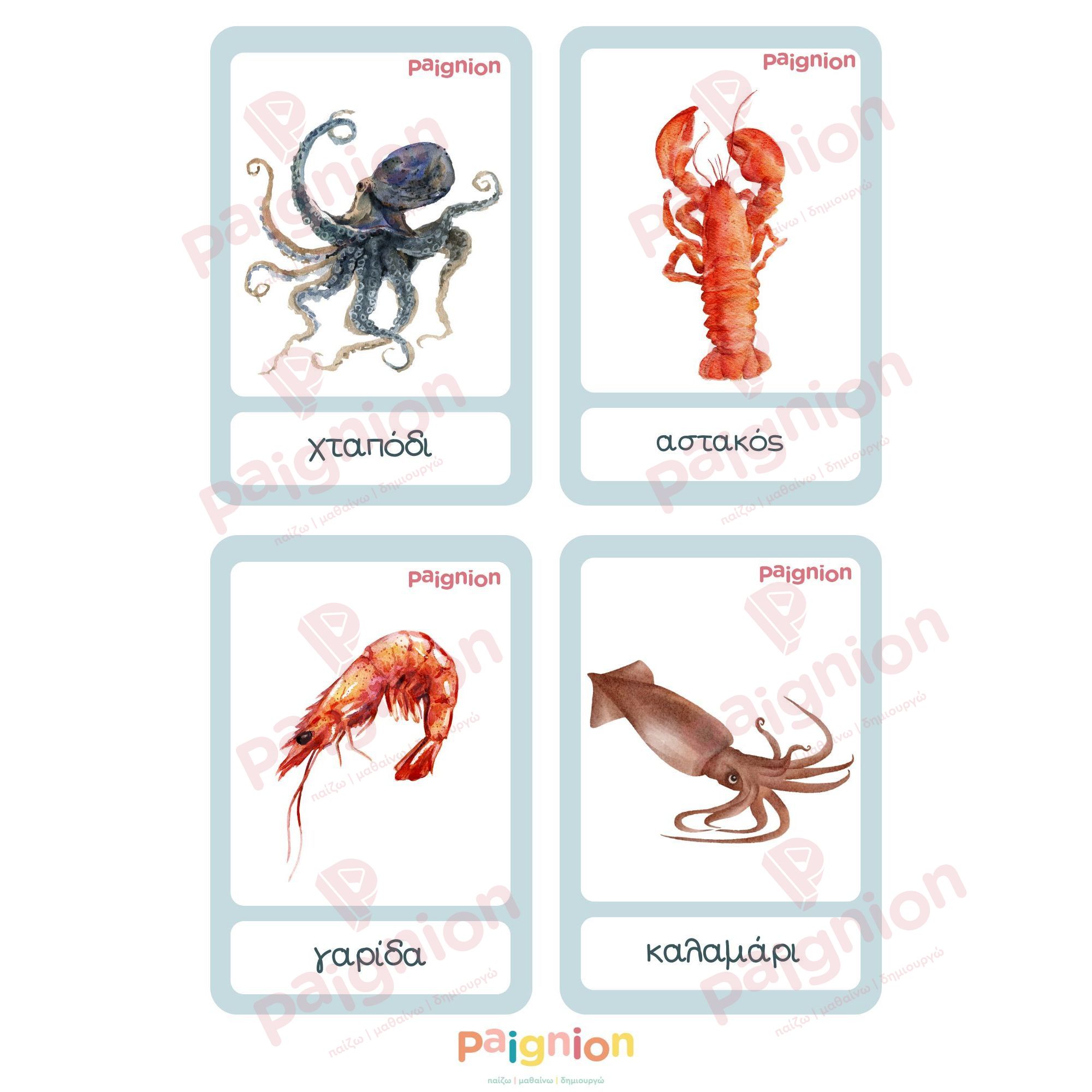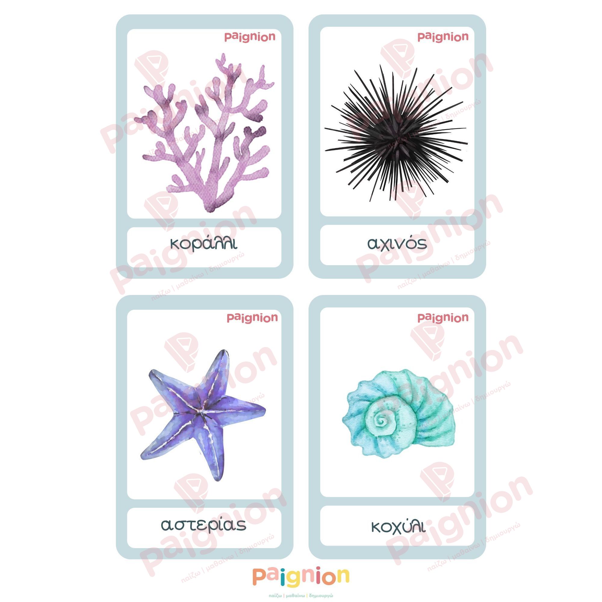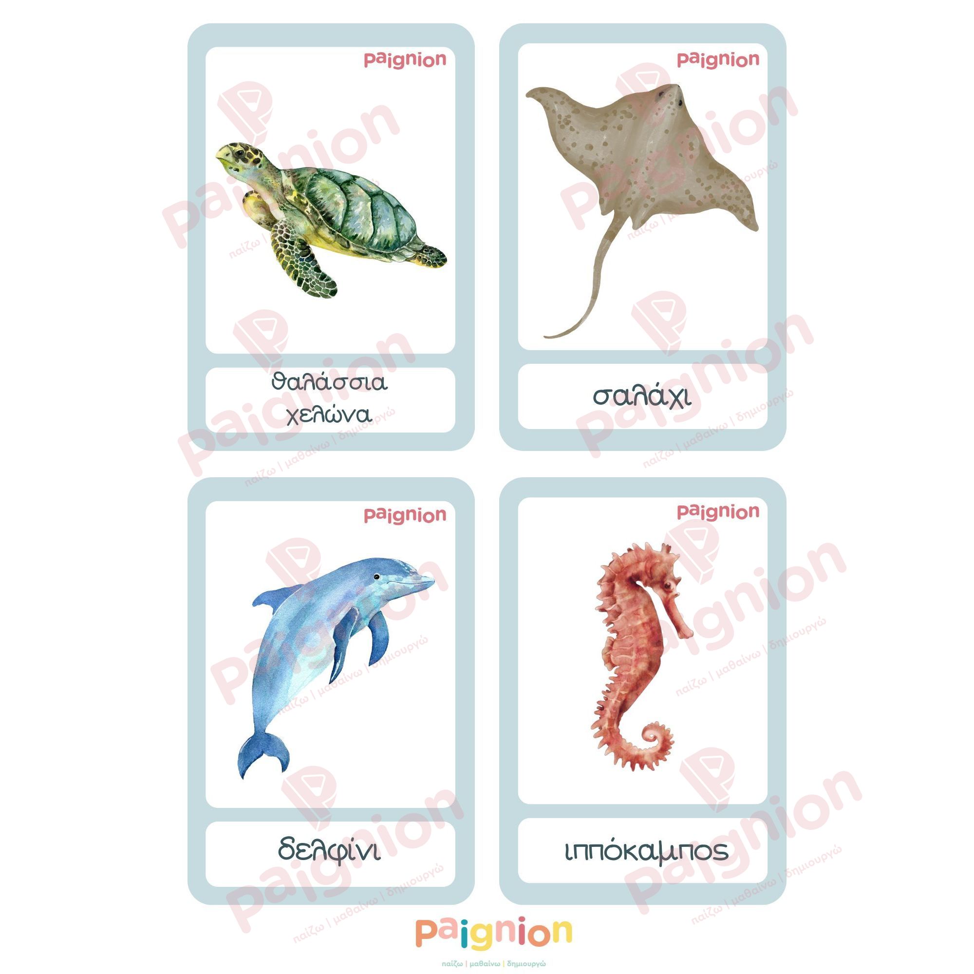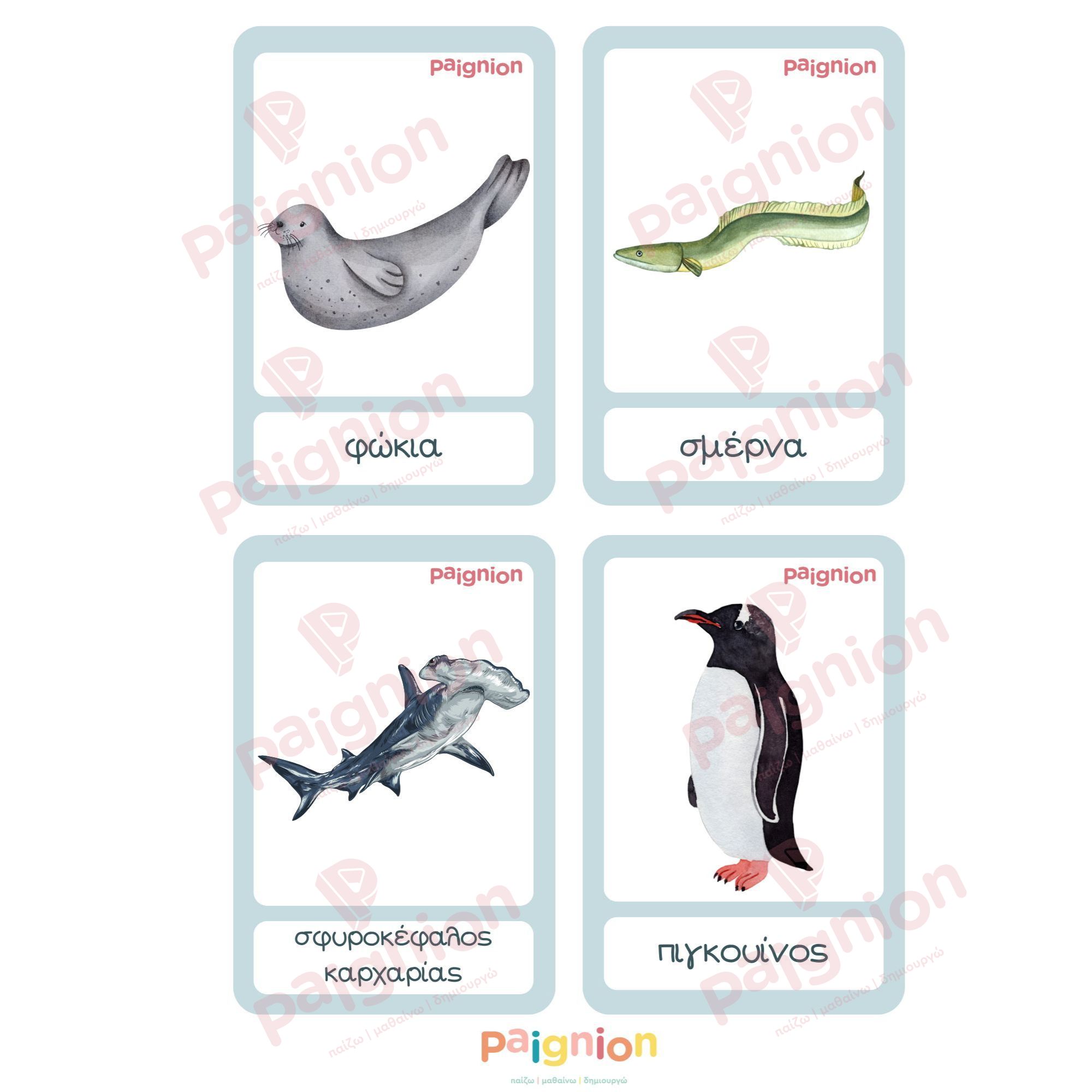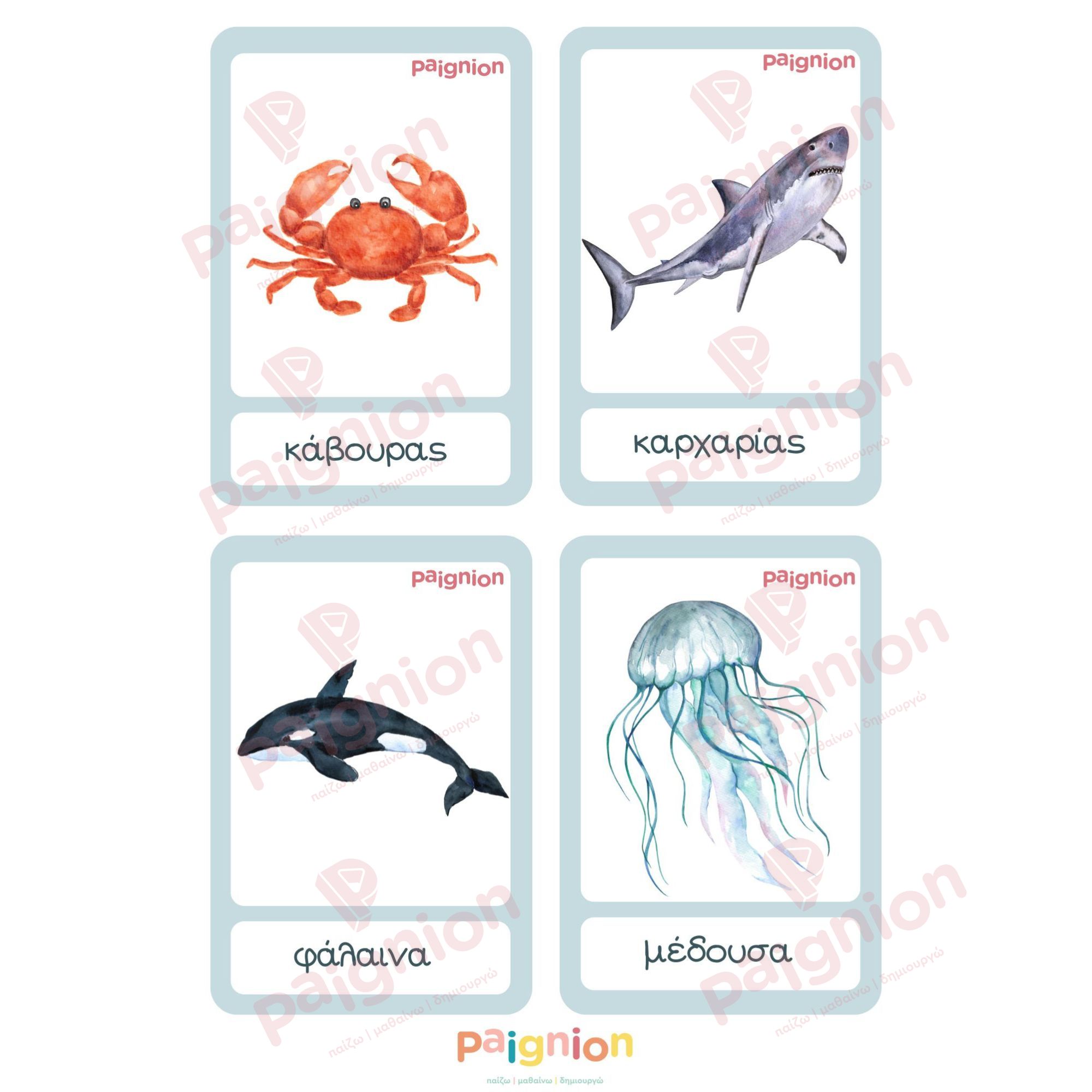 Κάρτες Ανάπτυξης Λόγου & Συμμετρίας – Ζώα του Ωκεανού (PDF)