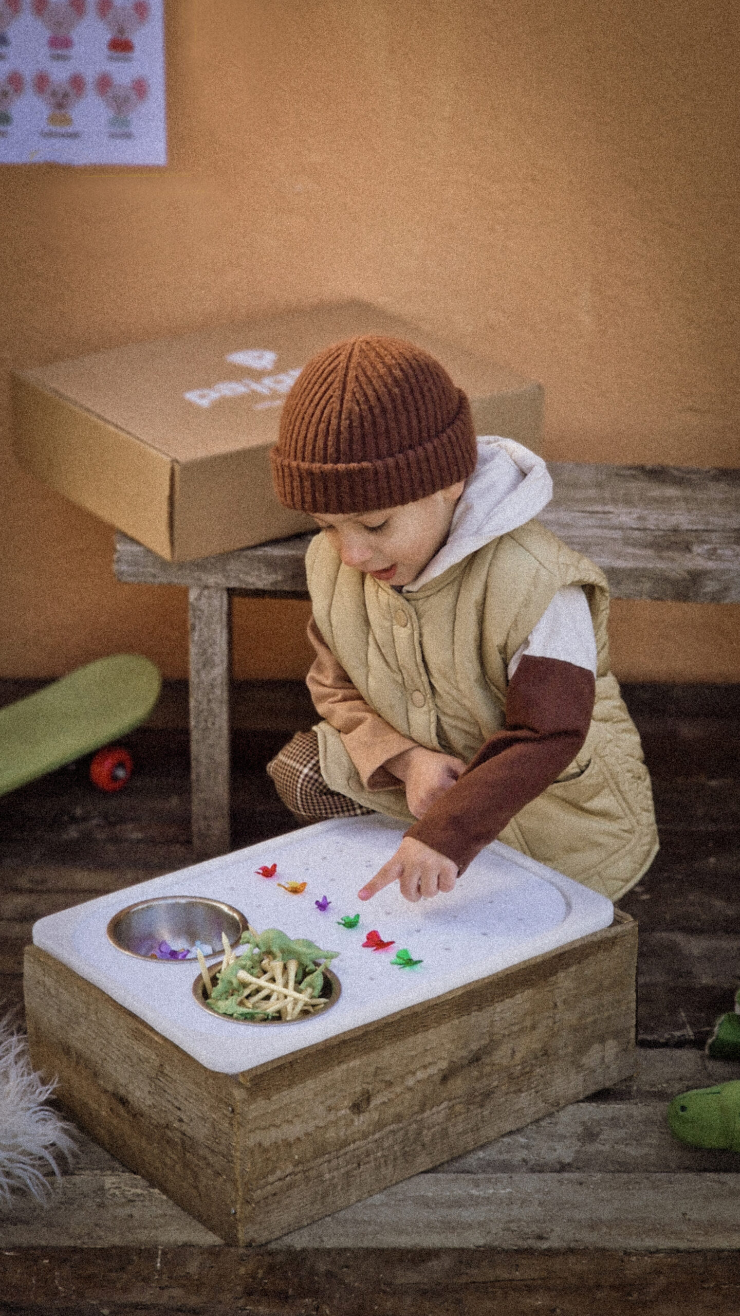 Ο πίνακας αυτός θα βοηθήσει το παιδί να δουλέψει λεπτούς χειρισμούς των δαχτύλων και του καρπού , να συντονίσει μάτια και χέρια και να συγκεντρωθεί . Με τον πίνακα αυτόν έχεις όλα τα υλικά που χρειάζεσαι οργανωμένα και εύκολα προσβάσιμα στο παιδί.