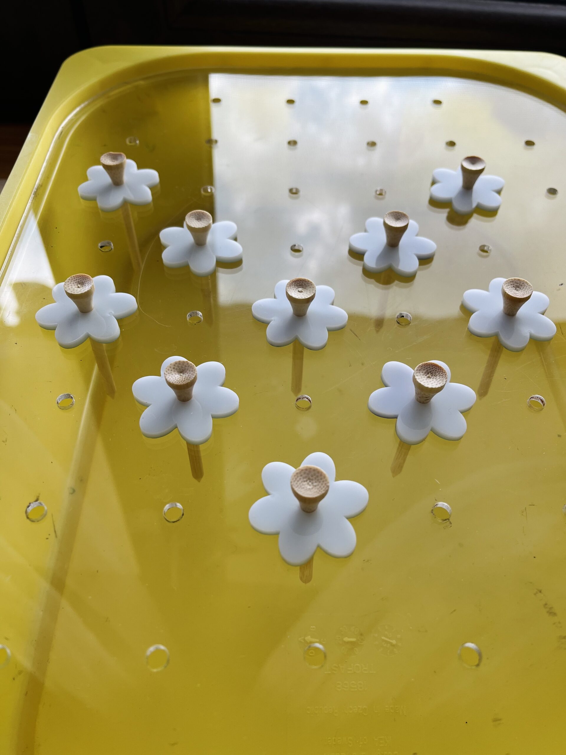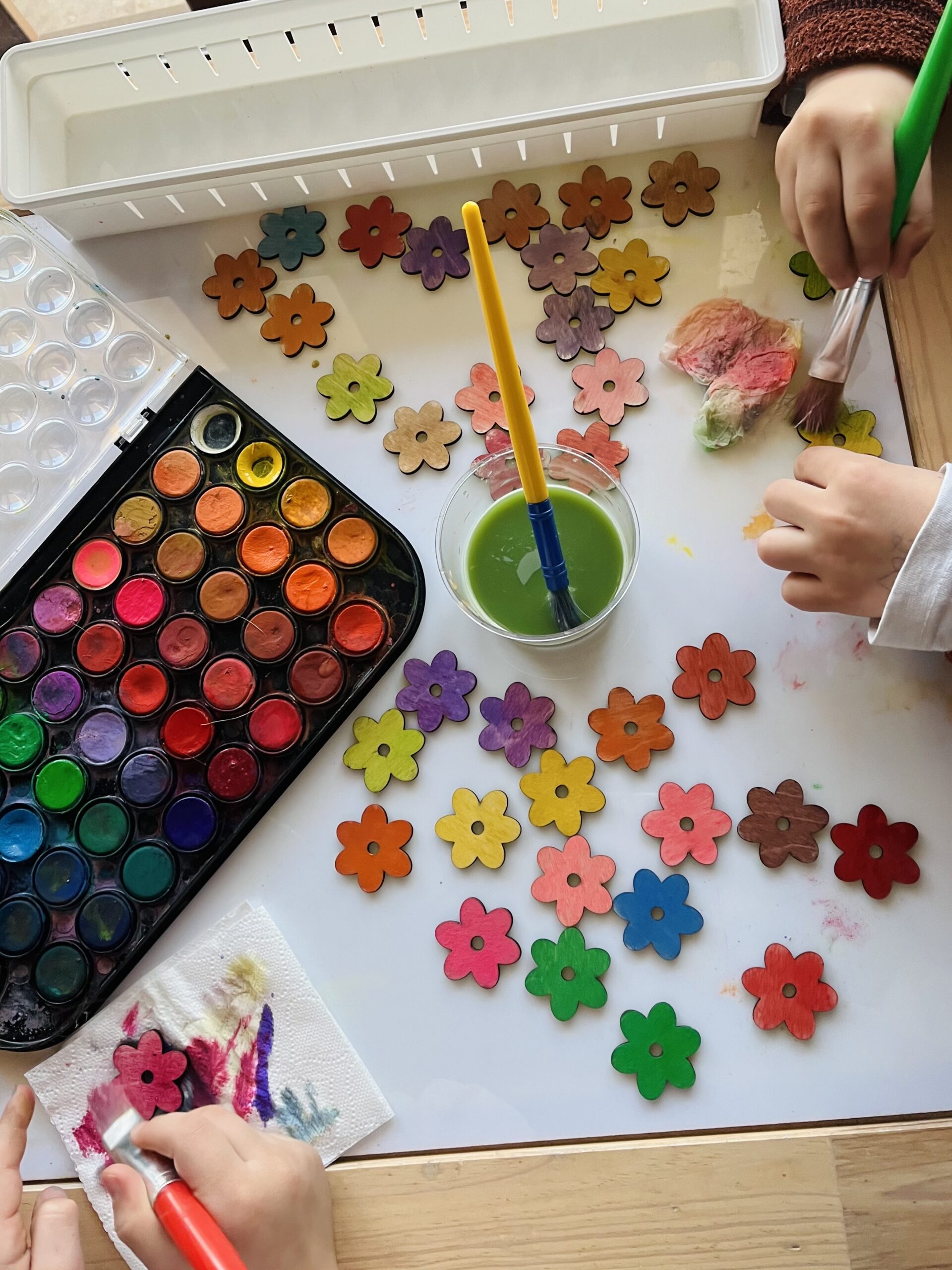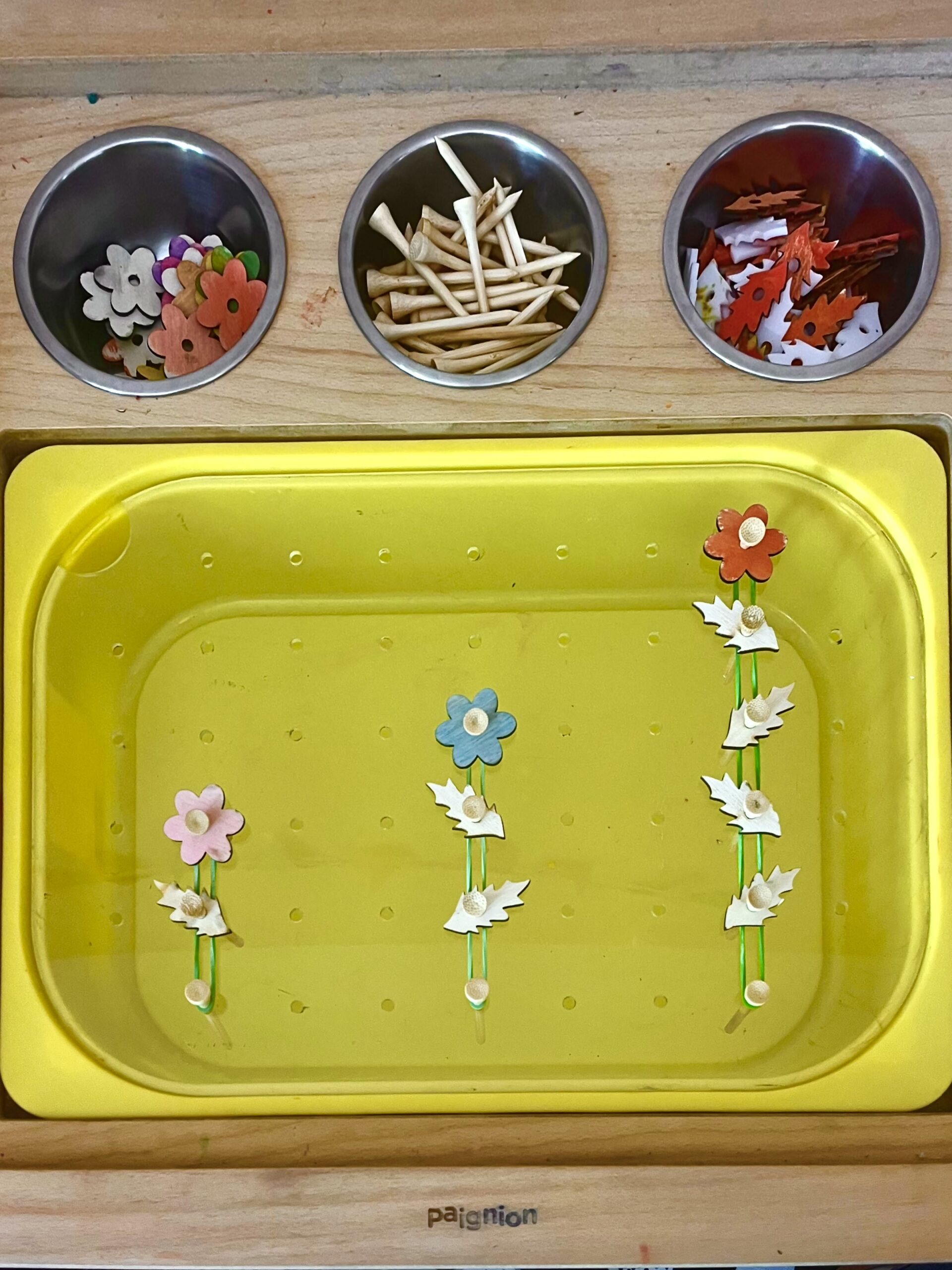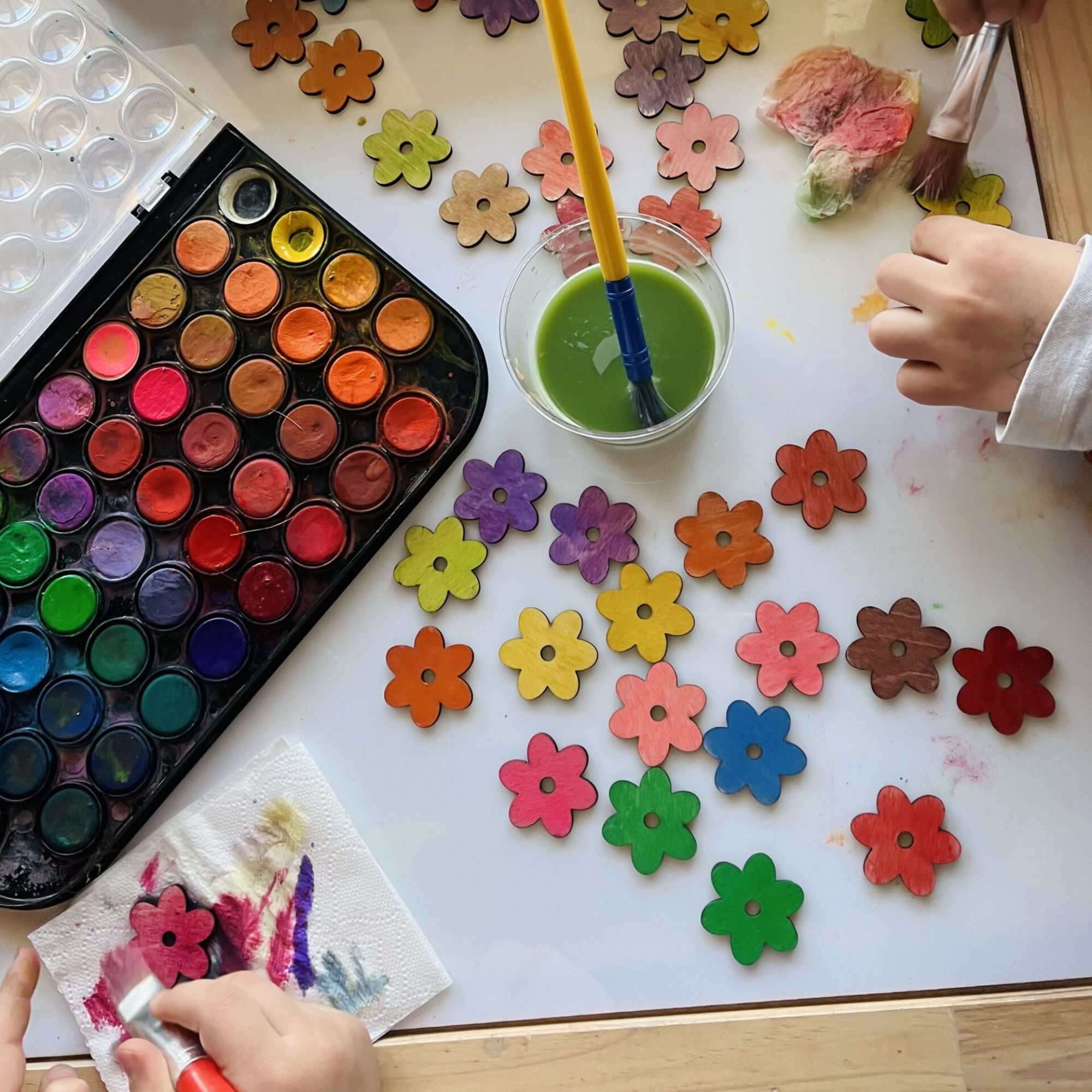 Τα λουλουδάκια μας δεν είναι χρωματισμένα. Μπορείτε να επιλέξετε το υλικό τους ανάμεσα σε φυσικό ξύλο και λευκό ακρυλικό, γεγονός που σας επιτρέπει να τα χρωματίσετε εσείς στην συνέχεια όπως και με όποιο υλικό θέλετε.