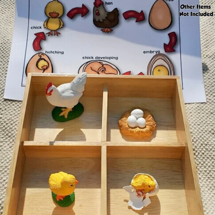 Ο καλύτερος τρόπος να μιλήσεις για τον κύκλο ζωής μιας κότας αλλά και το παιδί να μπορέσει να το κατανοήσει πλήρως είναι μέσω του βιωματικού παιχνιδιού. Τι καλύτερο λοιπόν από τα σετ μινιατούρες για τους αγαπημένους κύκλους ζωής; Μπορείτε να τους τοποθετήσετε πάνω στον ξύλινο πίνακα μας «κύκλος ζωής» για μια ολοκληρωμένη δραστηριότητα και είναι ιδανικά και για bookish play αλλά και για αισθησιακό παιχνίδι.