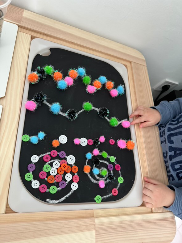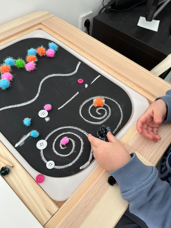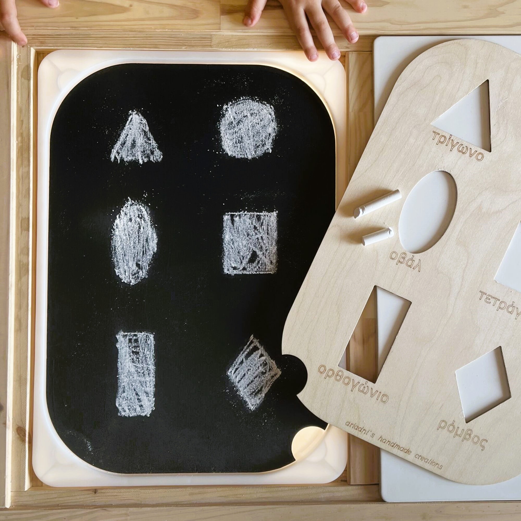 💡Η δική μας πρόταση ανεξαρτητοποίησης για τον πίνακα αυτόν αφορά την οργάνωση του τραπεζιού ώστε το παιδί να τα έχει όλα οργανωμένα και να μη χρειάζεται την παρέμβαση του ενήλικα . Μερικά μπολάκια με κιμωλίες, μικρά σφουγγάρια και λίγο νερό είναι ακριβώς ό,τι χρειάζεστε . Μπορείτε χρησιμοποιήσετε τα πολύχρωμα πλαστικά μπολάκια μας που θα βρείτε στην ενότητα του συνοδευτικού εκπαιδευτικού υλικού .