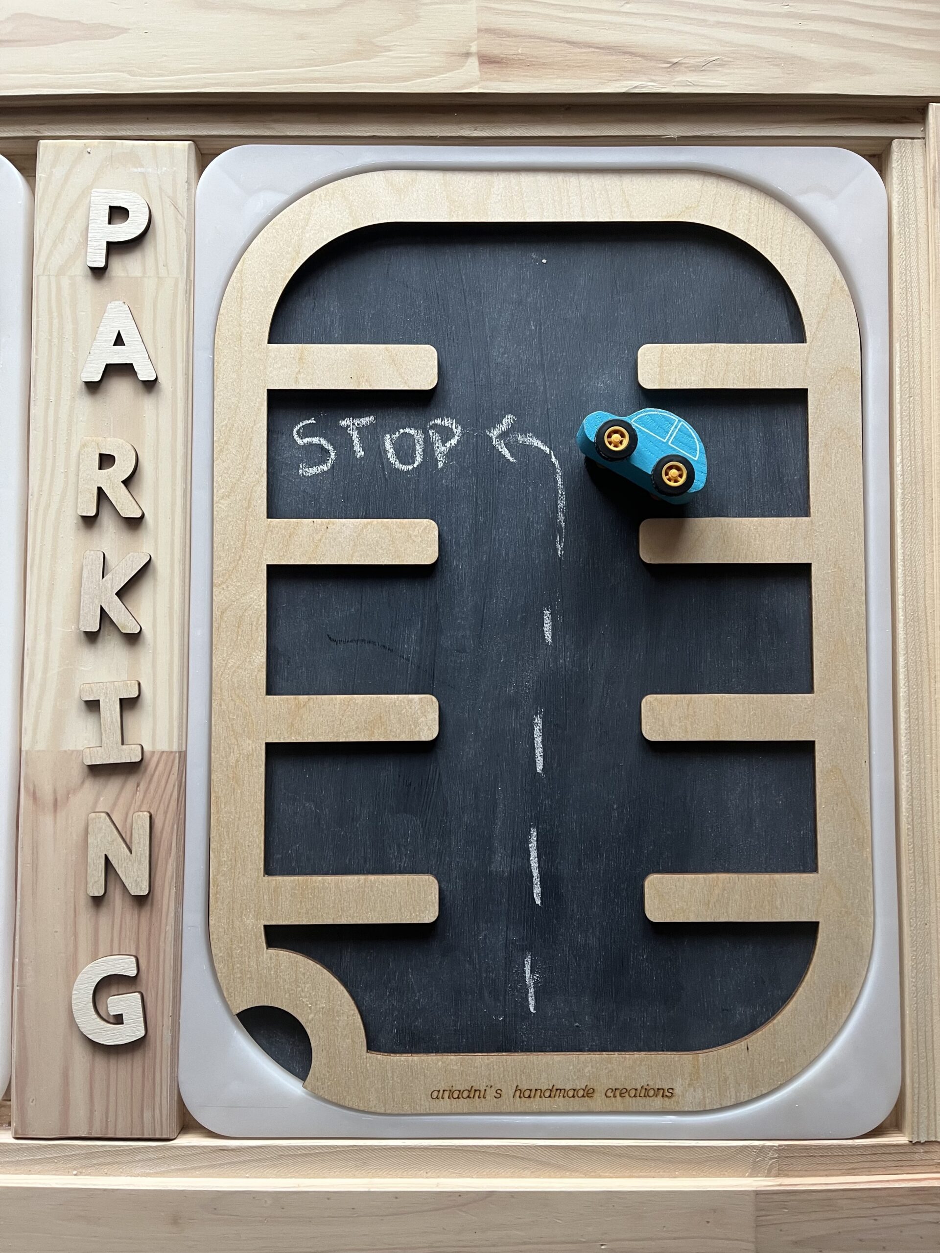 Λεπτομέρειες προϊόντος : Ξύλινος μαυροπίνακας για σχέδια δίχως τελειωμό . Εφάπτει ακριβώς στον κάδο Trofast του IKEA.