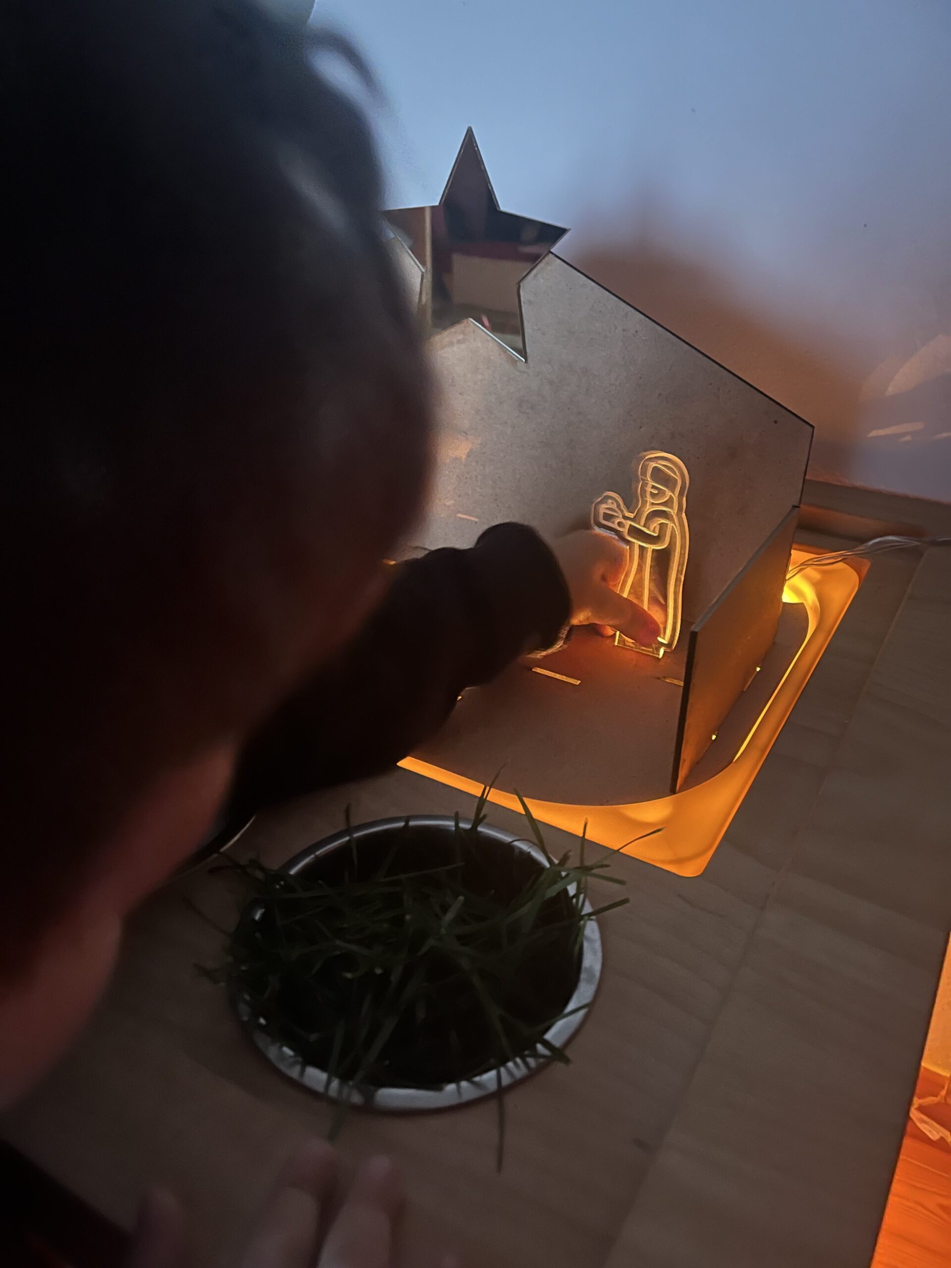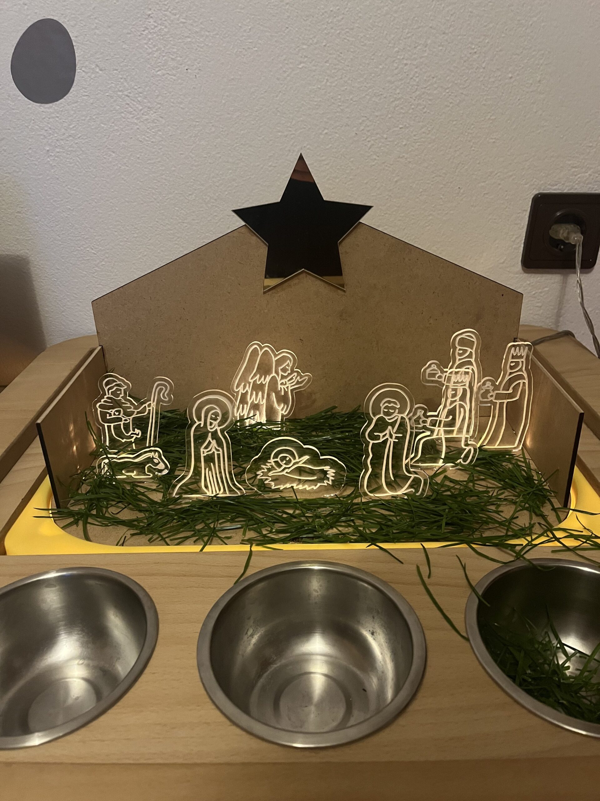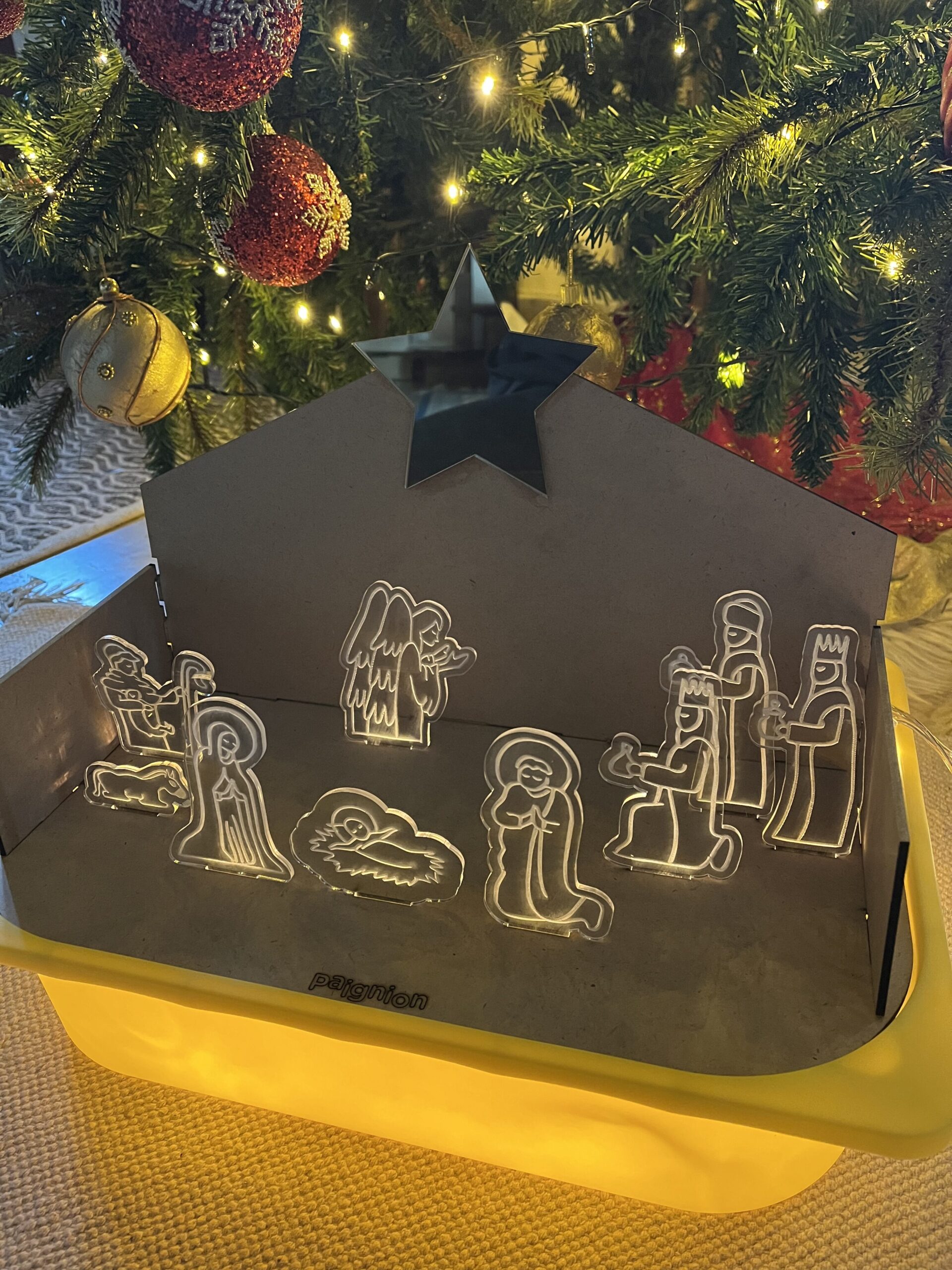 Ο Δεκέμβρης είναι ο αγαπημένος μήνας που γεμίζει τις καρδιές μας με αγάπη, ελπίδα και φως. Τον πίνακα αυτον τον δημιουργήσαμε για να μεταδώσουμε ακριβώς αυτό το μήνυμα στα παιδιά και σίγουρα η μαγεία του θα σας συναπάρει. Μια φάτνη που μπορείτε να επεξεργαστείτε , να μάθετε , να σας βοηθήσει ώστε να συζητήσετε γύρω απ’τη χριστιανική αυτή γιορτή αλλά και να στολίσετε κάτω απ’το δέντρο σας. Οι πλέξιγκλας φιγούρες είναι ιδανικές για παιχνίδια με το φως αλλά και σκιές . Παρατηρήστε τες, φωτίσετε τες, ζωγραφίστε τες και στο τέλος τοποθετήστε τες πάνω στη φάτνη βάζοντας λίγο γρασίδι για να ολοκληρωθεί η κατασκευή σας .
