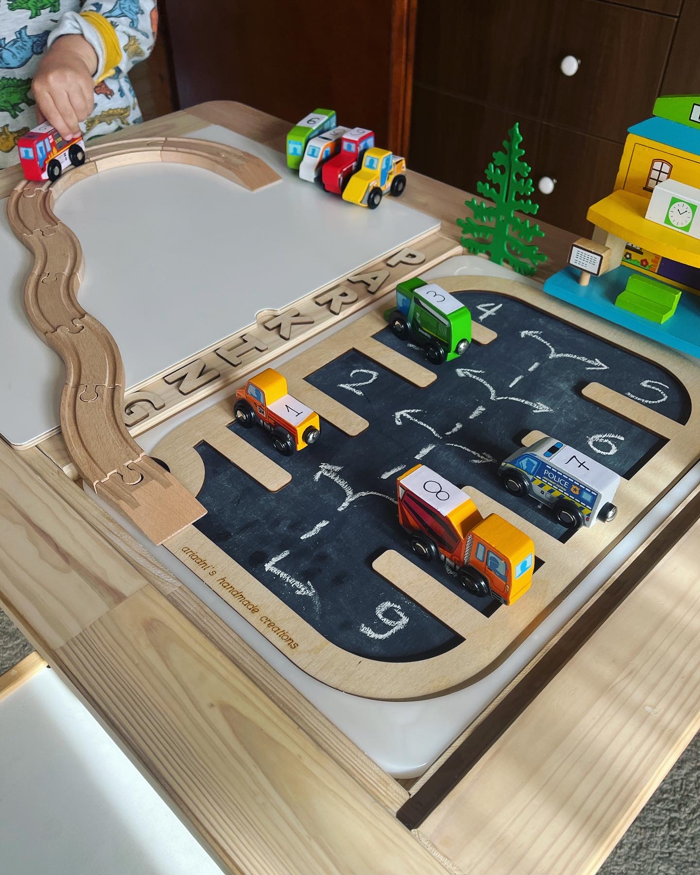 Μπορεί να συνδυαστεί με τον 2 σε 1 μαυροπίνακα σαν βάση από κάτω για να μπορείτε να γράψετε πάνω τα νούμερα στις θέσεις ή οτιδήποτε άλλο το παιδί μπορεί να φανταστεί και να δημιουργήσει.