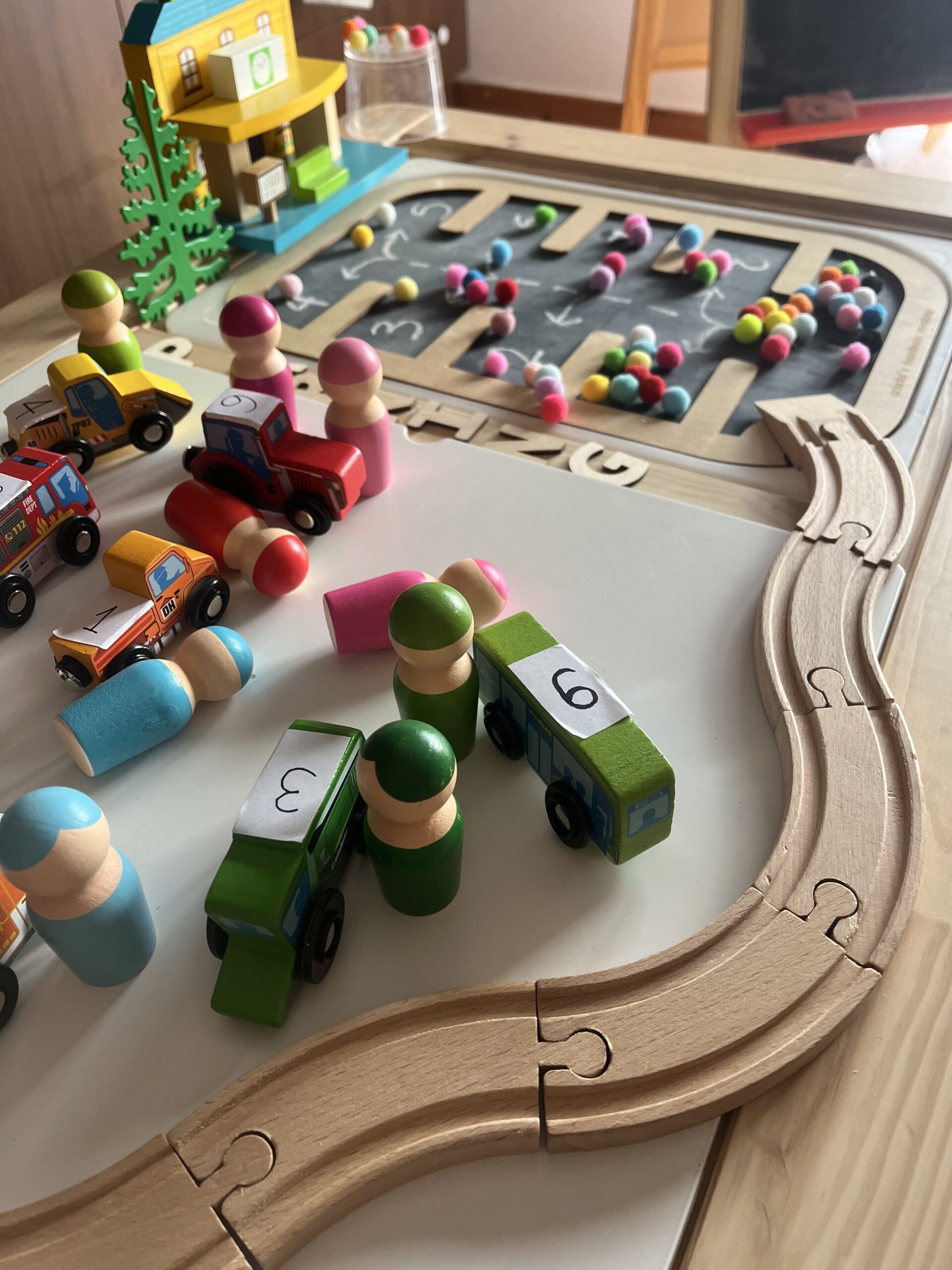 Είναι πολύ σημαντικό εξάλλου εμείς οι γονείς και εκπαιδευτικοί να προσαρμοζόμαστε στα ενδιαφέροντα και στις ανάγκες των παιδιών. Η δική μας πρόταση παιχνιδιού θα βοηθήσει το παιδί να αναγνωρίσει, να μάθει και να αντιστοιχήσει τους αριθμούς. Κολλήστε νούμερα στο πάνω μέρος των αυτοκινήτων και σημειώστε τους ίδιους και πάνω στον πίνακα με κιμωλία και αφήστε το να οδηγήσει και να κατευθύνει τα οχήματα του .