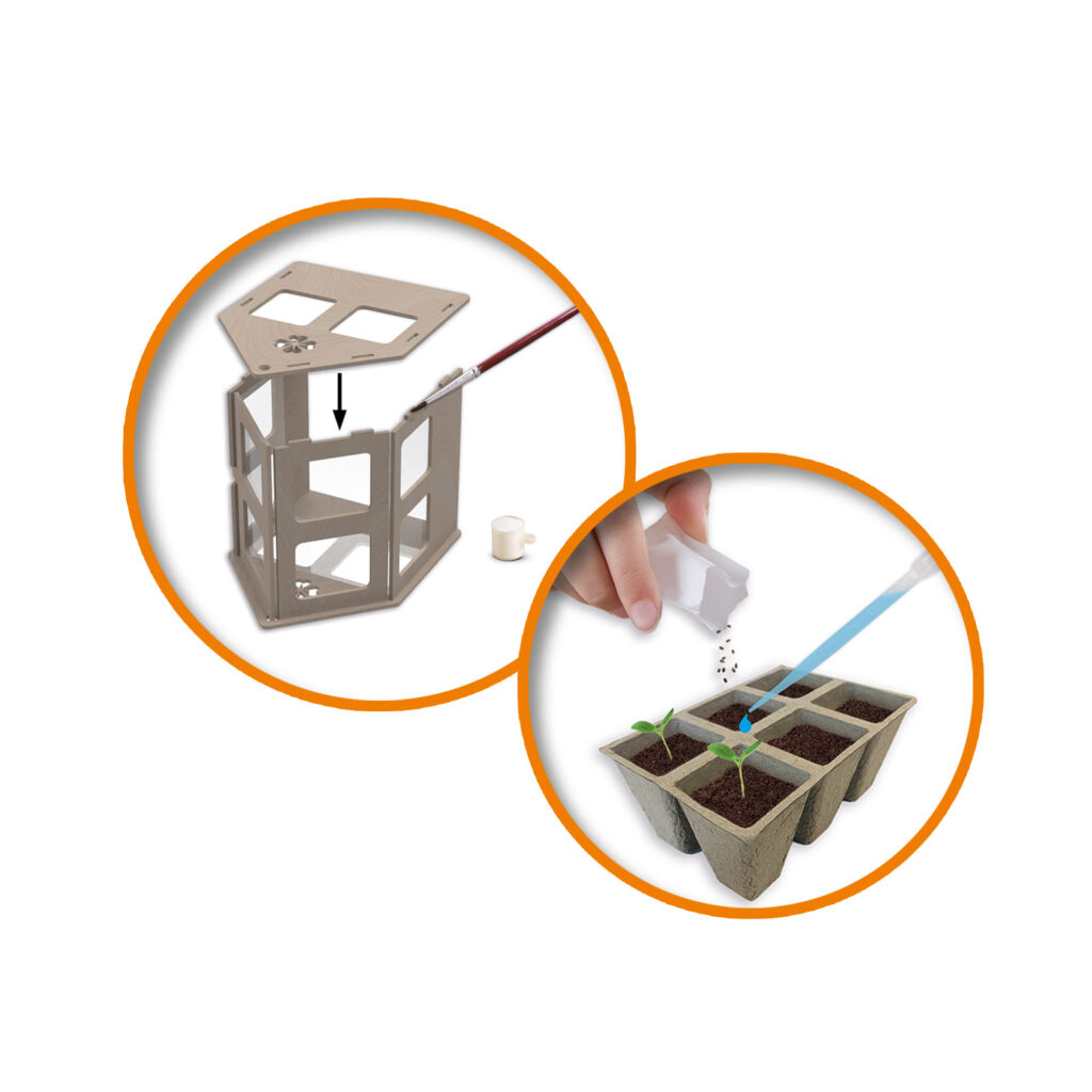 Το σετ αποτελείται από ένα ξύλινο θερμοκήπιο που μπορεί να συναρμολογηθεί χωρίς εργαλεία. Το θερμοκήπιο διαθέτει όλο τον απαραίτητο εξοπλισμό για τη σπορά σπόρων, όπως ένα δοχείο, χώμα και σπόρους. Όλα όσα χρειάζεστε για να καλλιεργήσετε τα δικά σας λαχανικά!