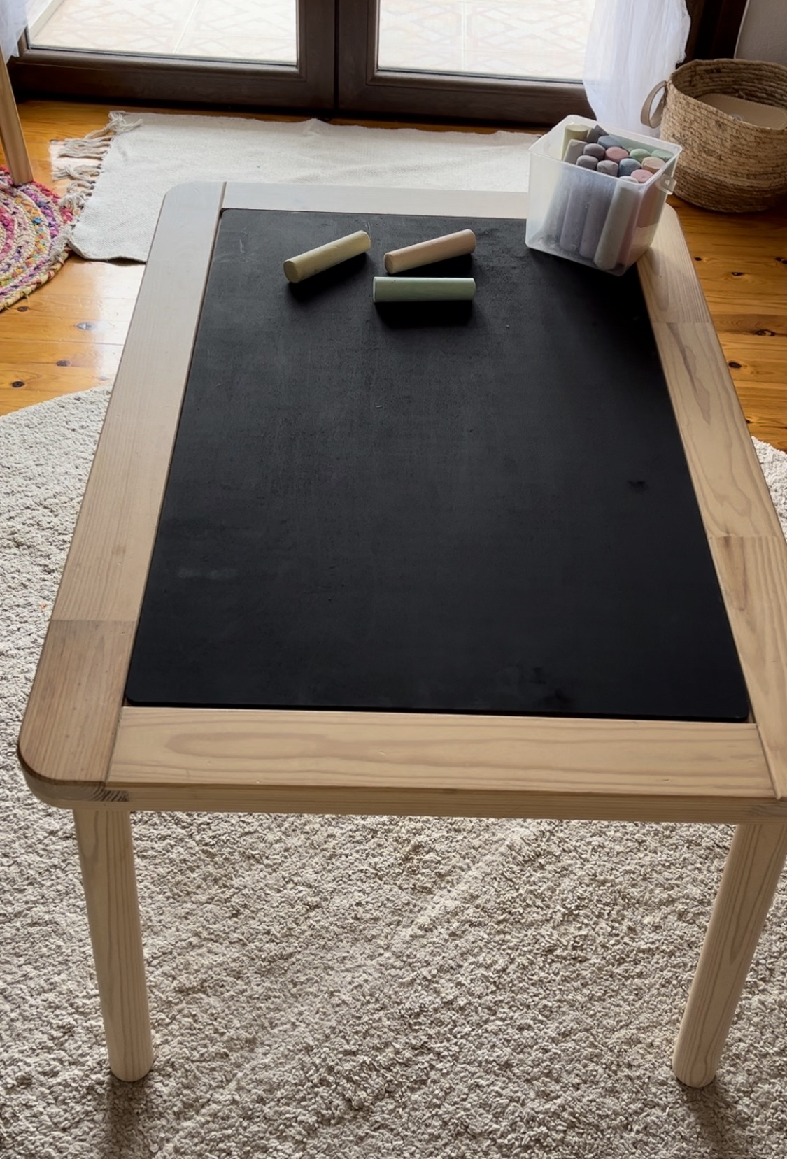 Λεπτομέρειες προϊόντος : Extra large size πίνακας διπλής όψεως. Από τη μια πλευρά είναι ξύλινη επιφάνεια σκέτη και από την άλλη πλευρά είναι μαυροπίνακας . Εφάπτει ακριβώς στο τραπέζι Flisat του Ikea.