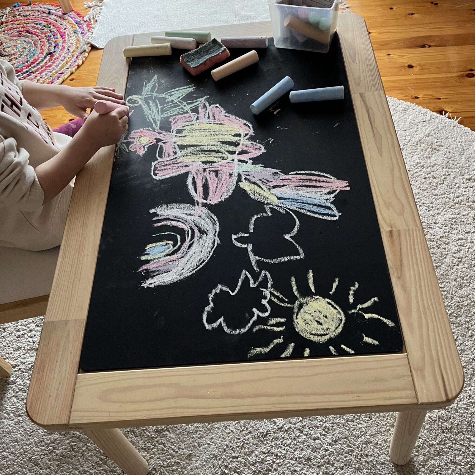 Μια μεγάλη ξύλινη επιφάνεια για το τραπέζι Flisat από τη μια και ένας μεγάλος μαυροπίνακας από την άλλη για ατελείωτα σχέδια. Η δημιουργικότητα θα αποκτήσει μορφή μέσα απ τις ζωγραφιές των παιδιών σας!