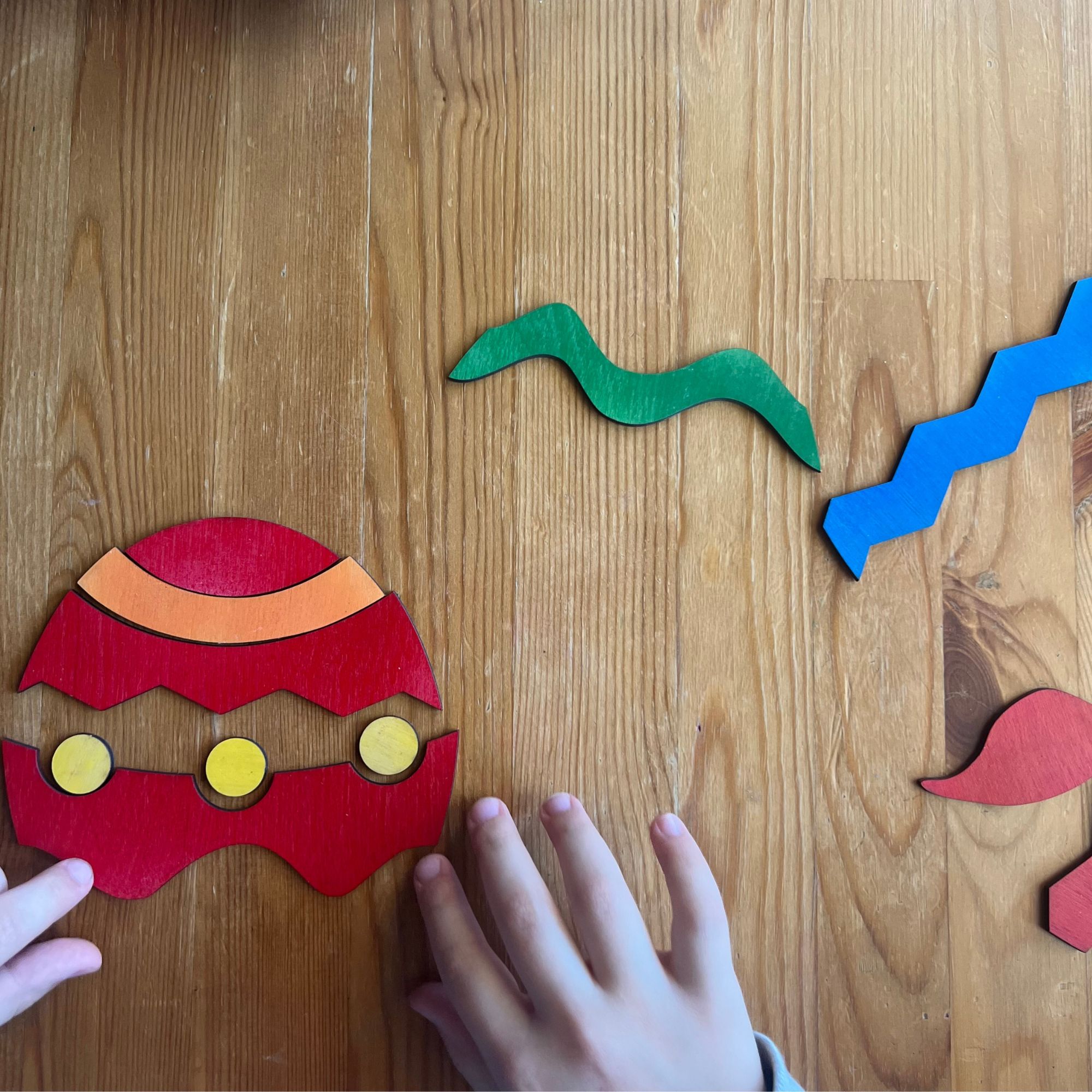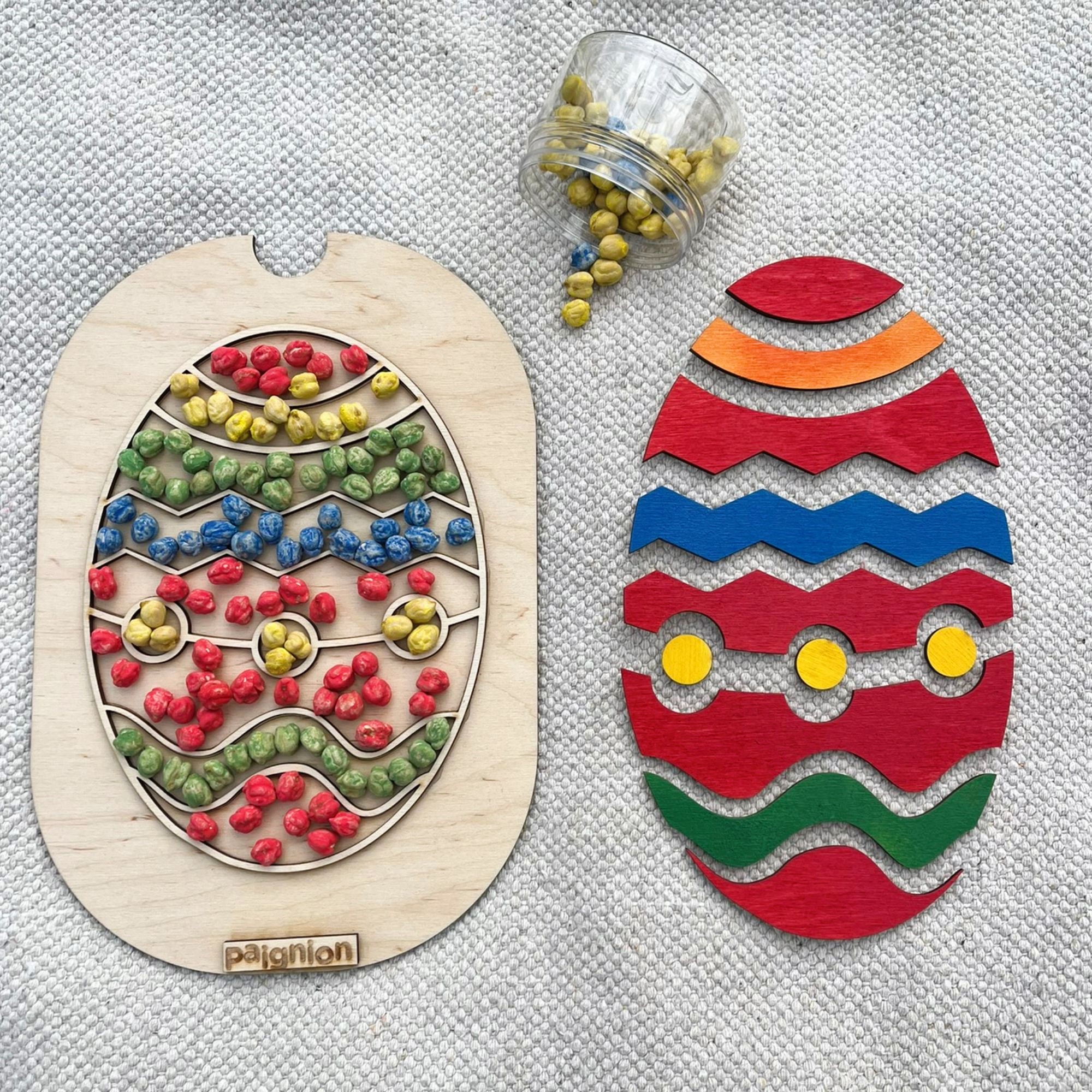 Παιχνίδι Παζλ: Χάρη στον ιδιαίτερο σχεδιασμό του, τα παιδιά μπορούν να αντιστοιχίσουν τα ξύλινα πολύχρωμα κομμάτια στις κατάλληλες θέσεις, συνθέτοντας και αποσυνθέτοντας το πασχαλινό αυγό όσες φορές θέλουν. Αυτή η διαδικασία καλλιεργεί την παρατηρητικότητα, τη χωρική αντίληψη και την ικανότητα οπτικής σύγκρισης.